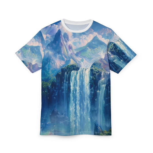 Scenic Waterfall Unisex Tee - Nature-Inspired Cut & Sew Shirt